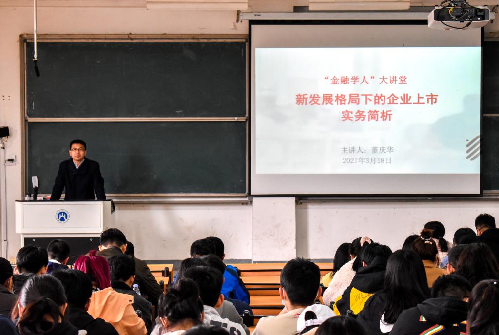 (通讯员:李烁涵)3月18日下午,美高梅app 于圣井校区1号教学楼108室举办第三十期“金融学人”大讲堂,特邀德恒律所董庆华老师主讲,与学生共同探讨新发展格局下的企业上市实务。本次讲座由陈玉林老师主持,部分学生代表参加。