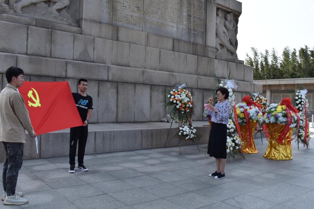 烈士忠魂昭昭,白云轻抚悠悠。初夏的徐州市淮海战役烈士纪念塔园林万木葱茏、庄严肃穆。为缅怀革命先烈,表达崇敬之情,我院师生党员拾阶来到淮海战役纪念塔前,缓步绕塔一周,深情瞻仰纪念塔及三万多名烈士名录。在四块无字碑前,全体党员思绪万千,深切缅怀无名烈士的牺牲奉献。站在纪念塔前,全体党员三鞠躬表达敬意。美高梅app 学生第三党支部书记郭夕熙带领全体党员面对鲜红的党旗,举起右拳,庄严地重温入党誓词。“我志愿加入中国共产党……”,字字千钧,句句铿锵,萦绕在纪念塔周围。大家参观了淮海战役纪念馆,一件件实物、一张张图片、一个个场景,让大家对淮海战役历史有了更深入的了解,深刻感受到了共产党领导下的革命军人一不怕苦、二不怕死的大无畏革命精神,感受你中有我、我中有你的军民鱼水情。随后,大家还参观学习了淮海战役碾庄圩战斗纪念馆。